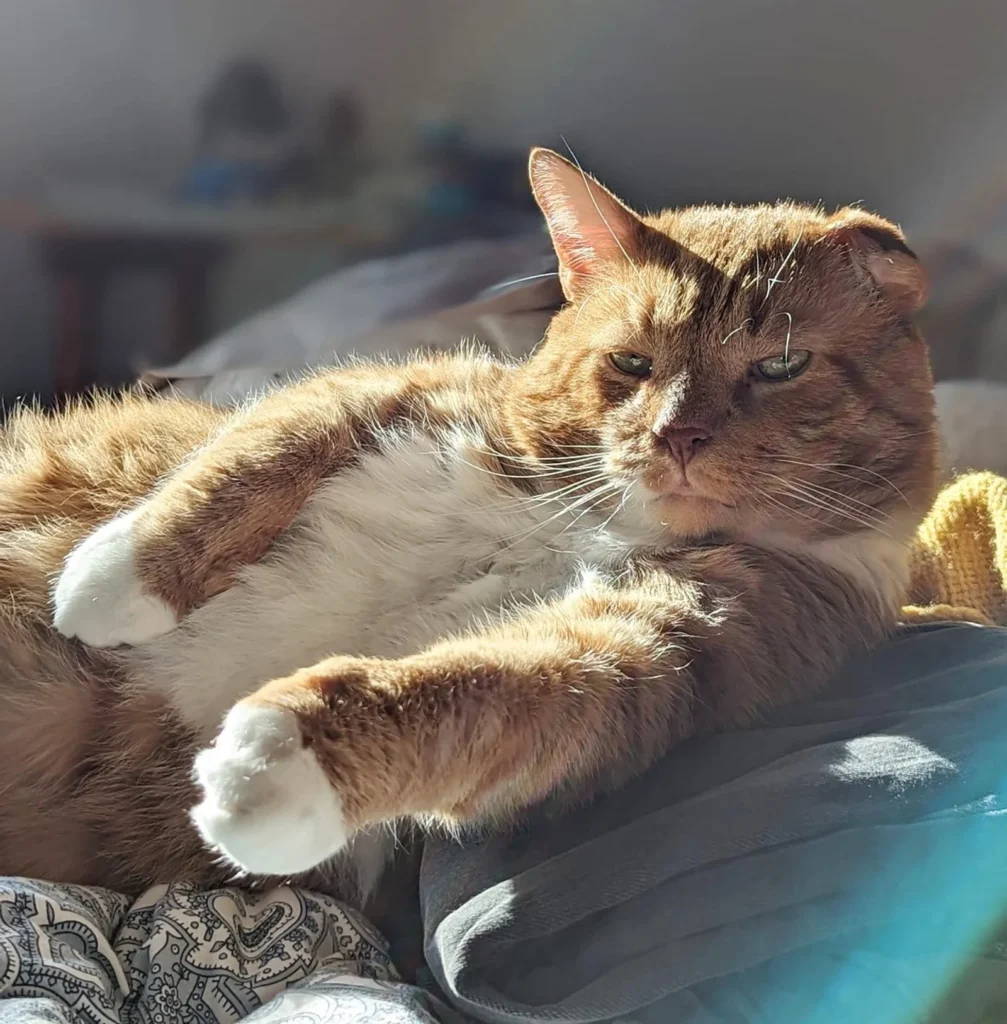 Now, Garfield, now Freddy, is thriving. He has a warm home, a loving family, and even a feline sister, Millie, to keep him company.