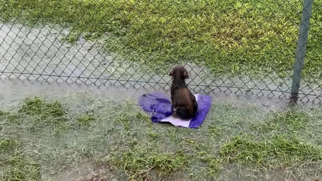 The call came on a stormy afternoon — a small puppy had been spotted alone on a flooded baseball field in South Texas.