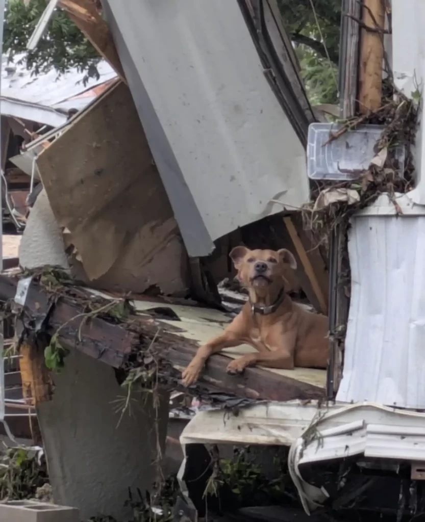 The land looked nothing like the place people once called home. And right there in the wreckage sat a single dog, clinging to what little was left — a dog named Superman.