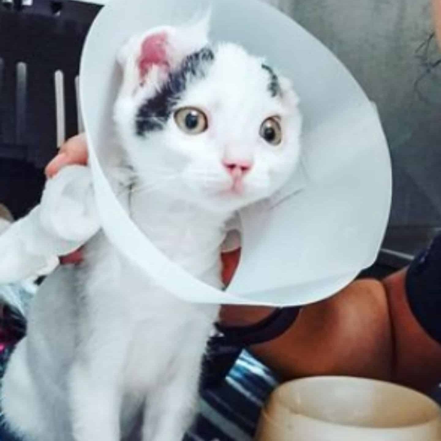 “This kitten’s entire pinna of the ear was gone, had a few maggots, and her skin was burned all around extending to the center of her head,” she explained.