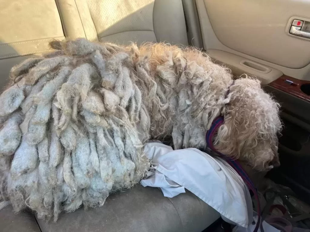 Groomers carefully shaved away the heavy mats that had weighed her down for so long.