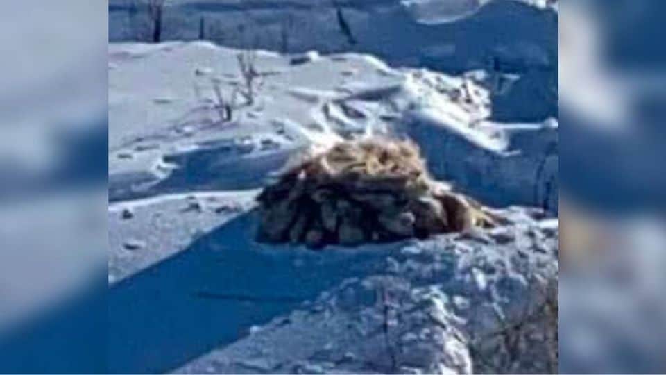 When the rescue team arrived, they could barely see the dog beneath the tangled branches and snowdrifts.