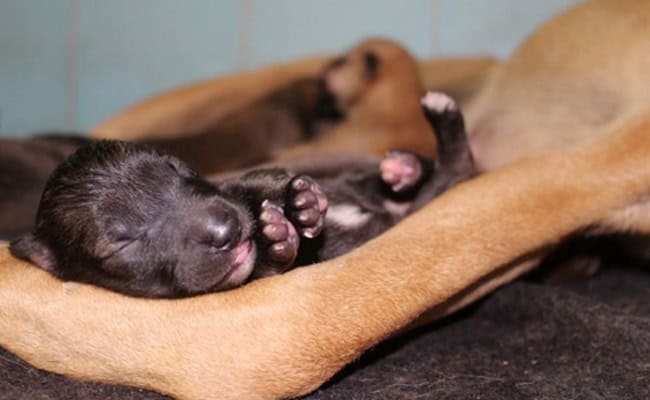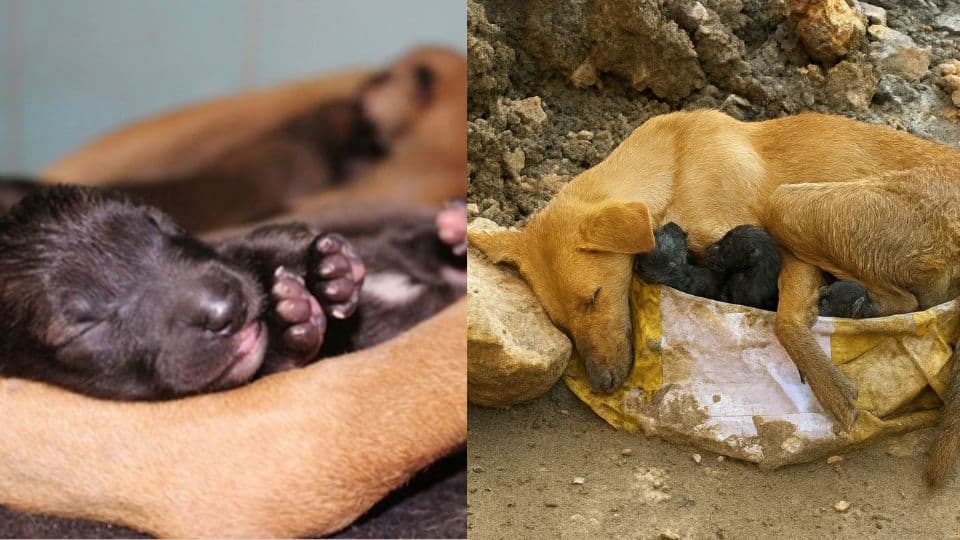 Her puppies were so new that their eyes were still closed.