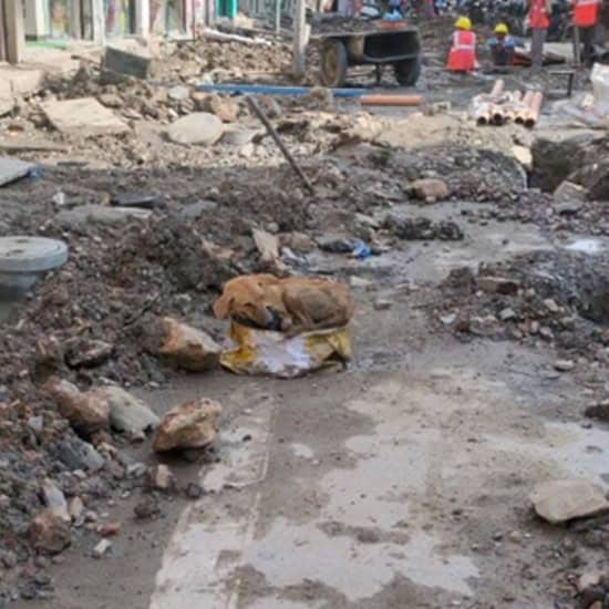 Rescuers Save Exhausted Mama Dog Giving Birth Alone in the Rubble