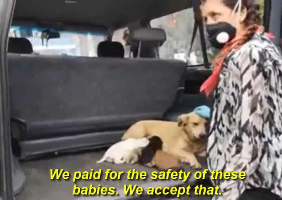 They lifted her puppies first, placing them gently into a soft basket.