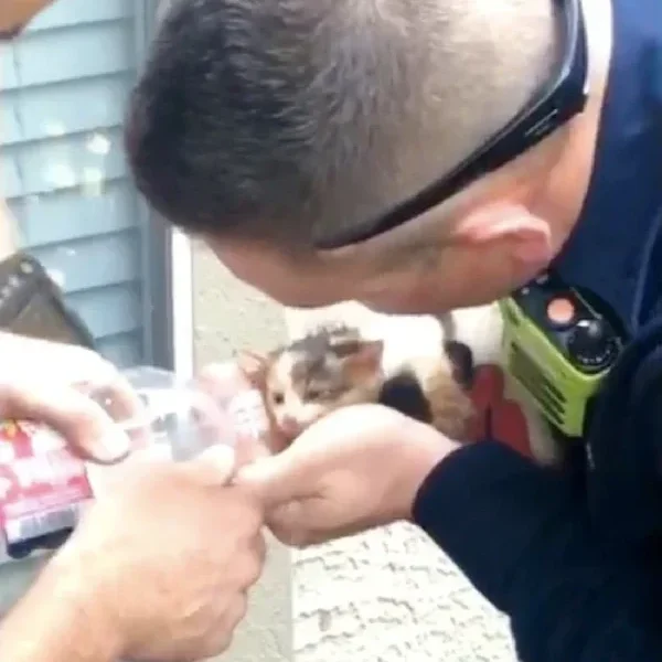 With time ticking and the kitten’s cries growing fainter, Animal Control officer Larry joined in. He managed to borrow a special tool from the city’s Public Works department.