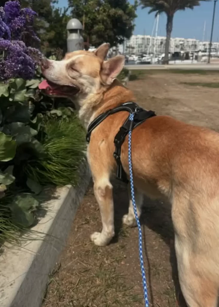 Even while healing, his personality shined through. He greeted people with a goofy grin, leaned in for pets, and carried himself with the charm of a dog who still believed in kindness.
