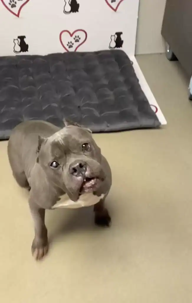 Even with all of that, Wally greeted every nurse, technician, and volunteer with gentle affection. He would nudge their hands for more pets and quietly rest his head against their legs as if thanking them for noticing him.