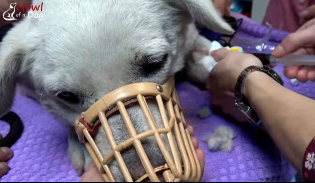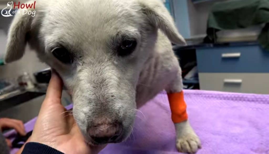 They checked his paws, teeth, thin body, and injured leg.