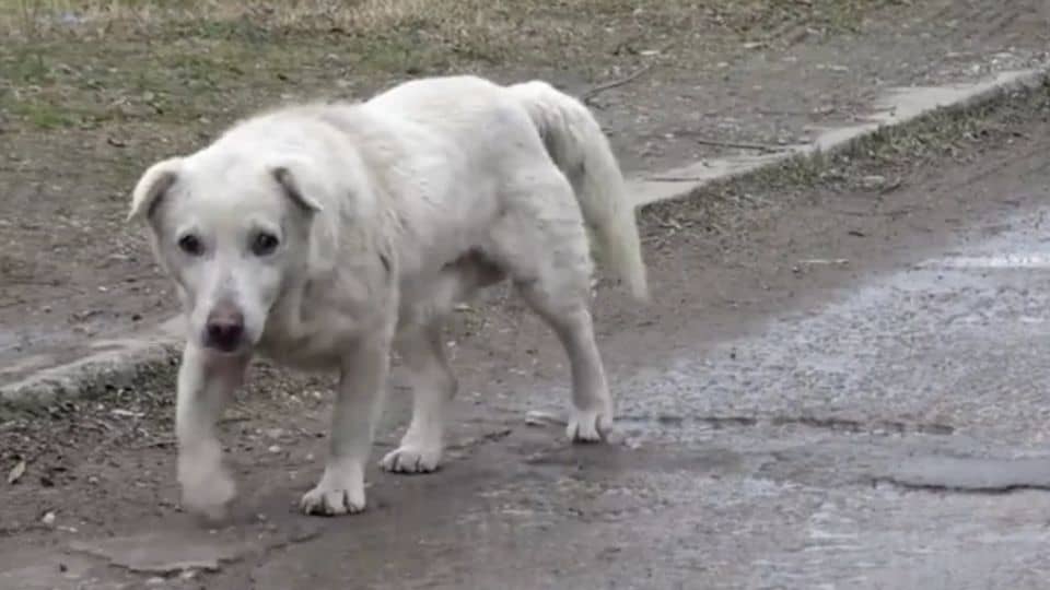 So when the rescuers stepped closer, he shuffled away in a sad, nervous circle.