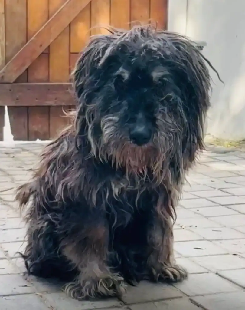 Hidden beneath the tangled fur was a thin wire wrapped tightly around one of the dog’s legs, cutting into his fragile skin.