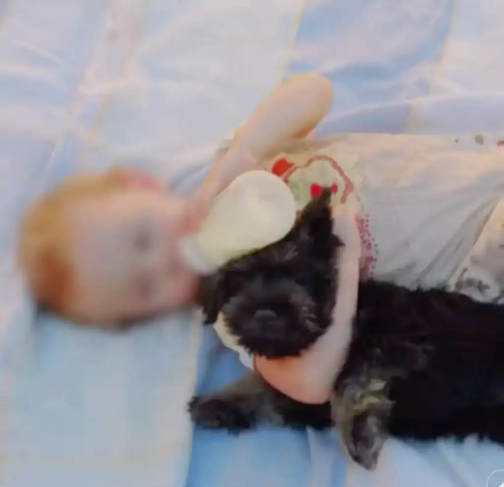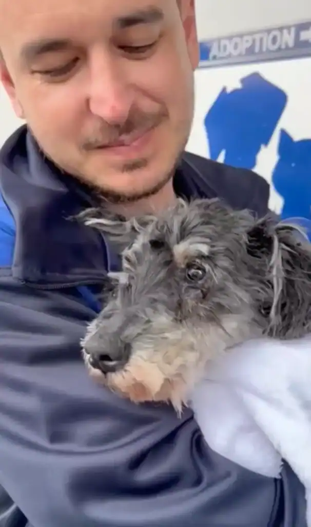 He gently wrapped the schnauzer in a soft nightgown and placed him in a laundry basket, hoping warmth would calm him.