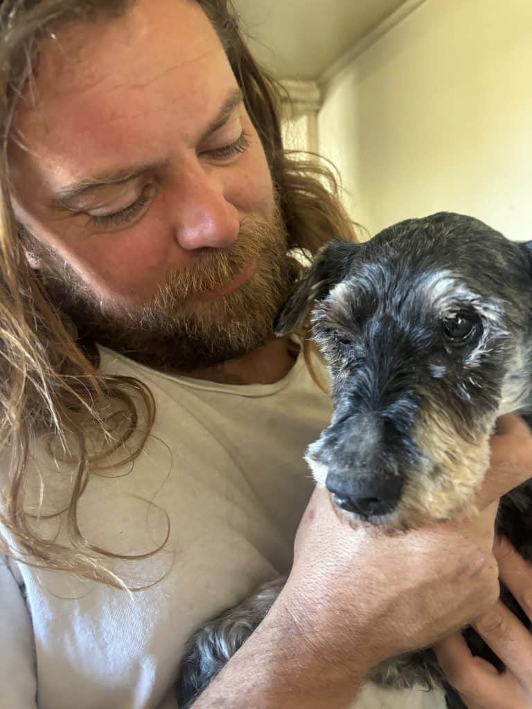 His laughter was soft and warm, and for the first time, the schnauzer didn’t flinch at the sound.