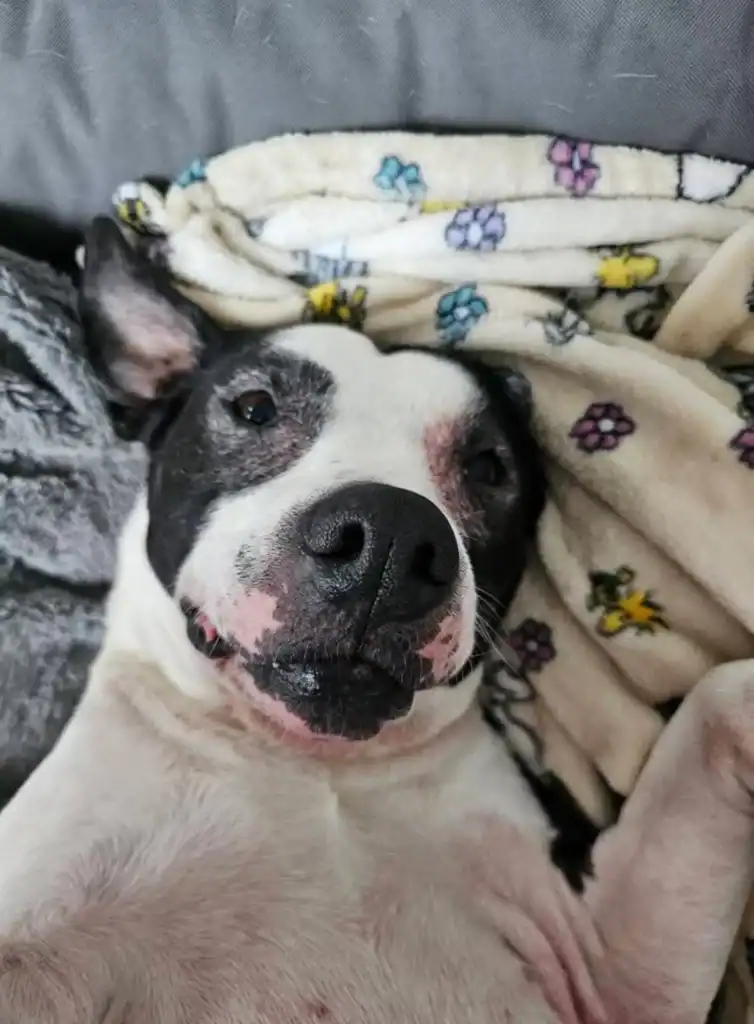 After going outside, she needs careful wipe-downs to calm her itchy skin.