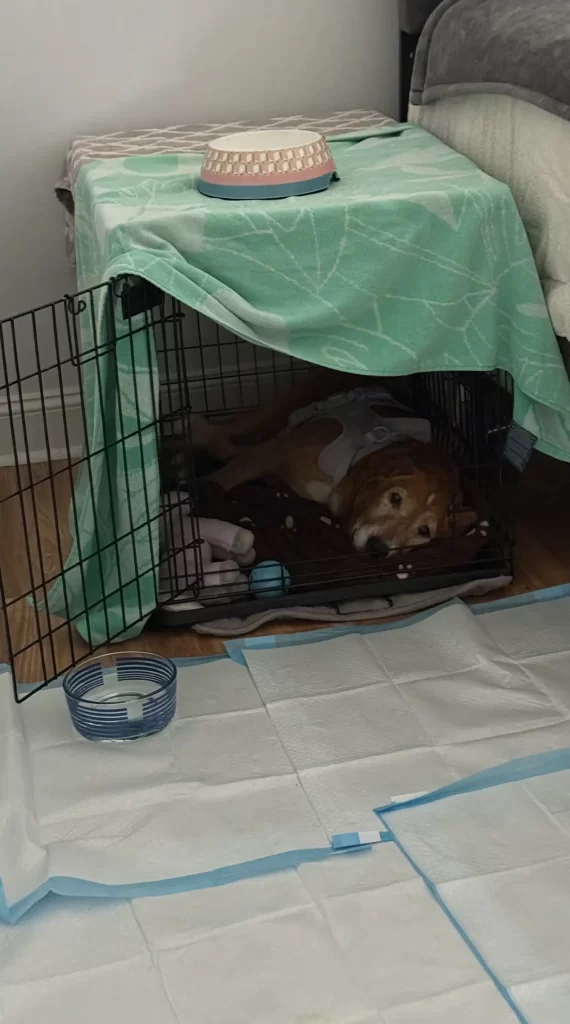 For the first two days, Lenore refused to leave the crate. She would flinch at gentle touches and kept her head buried deep in her bedding.