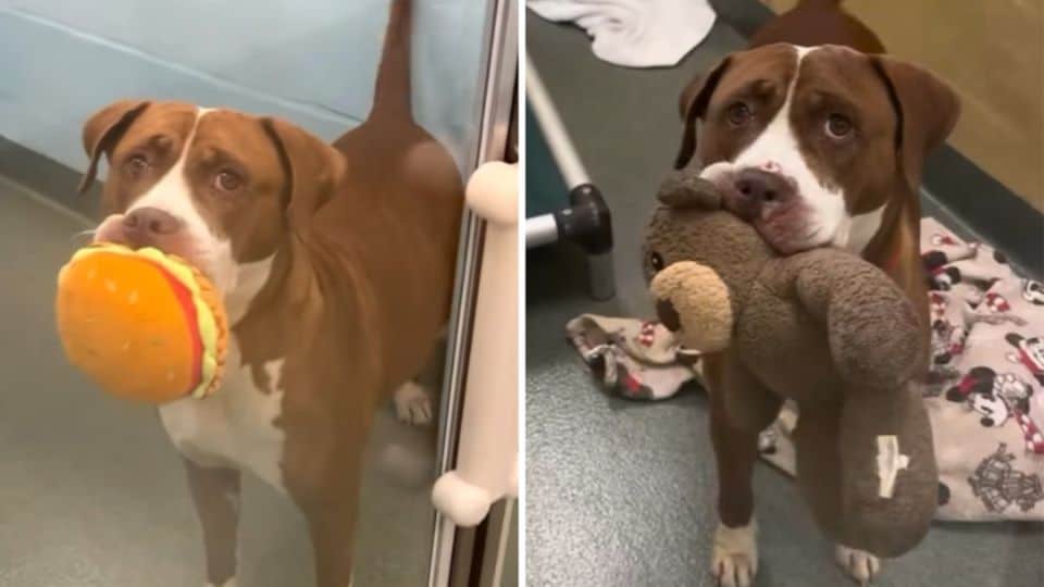 Sharing her story could make all the difference. Peanut is waiting patiently, holding her toy close, hoping that someone will see her and say, “That’s my dog.”