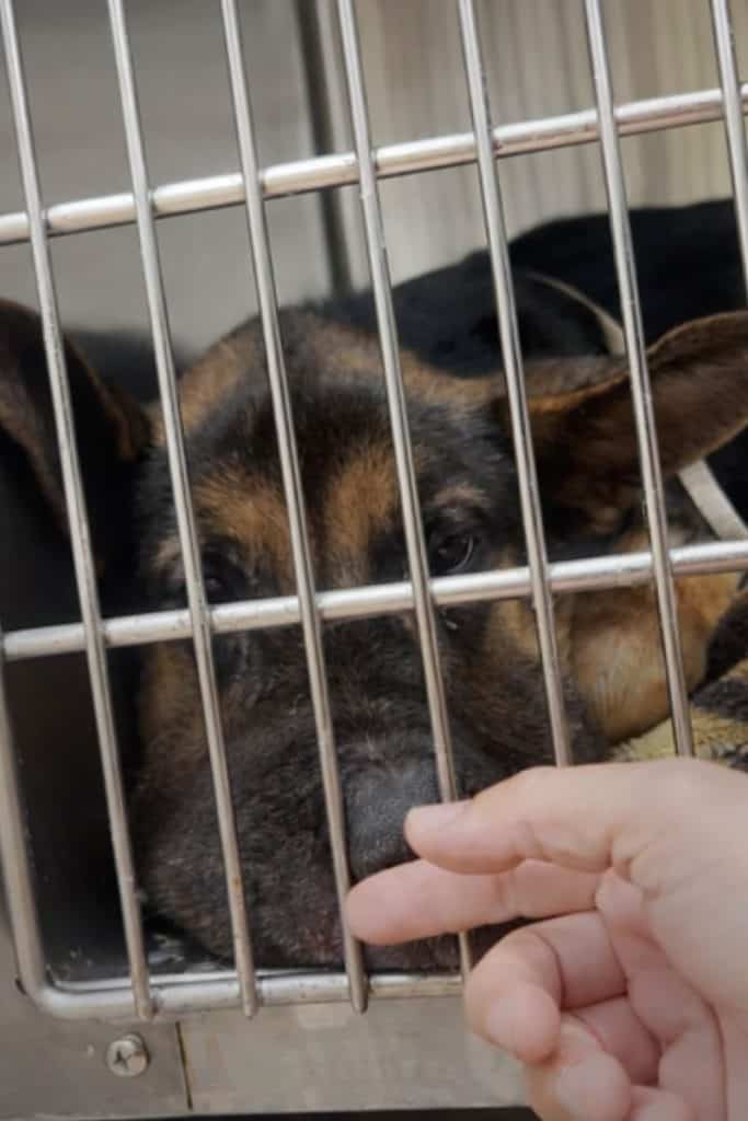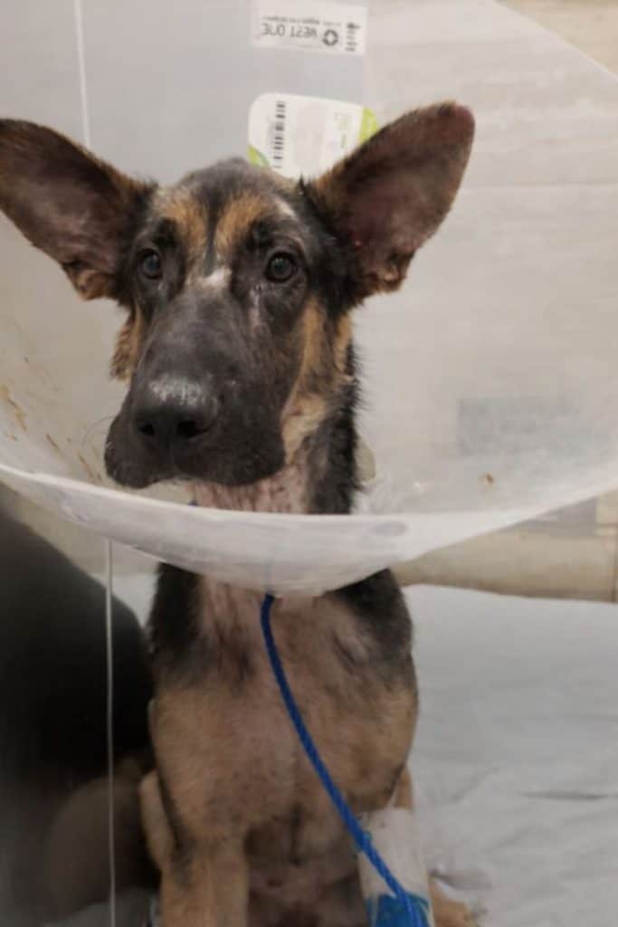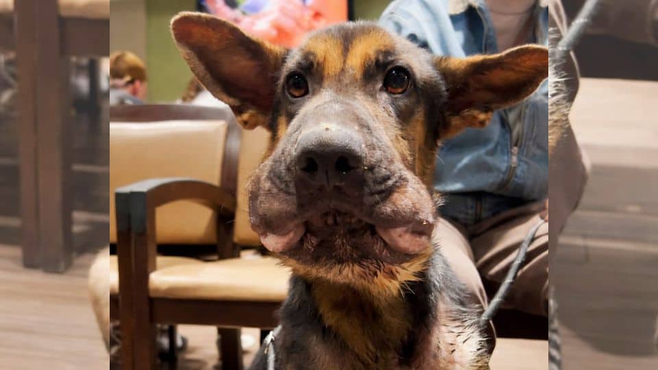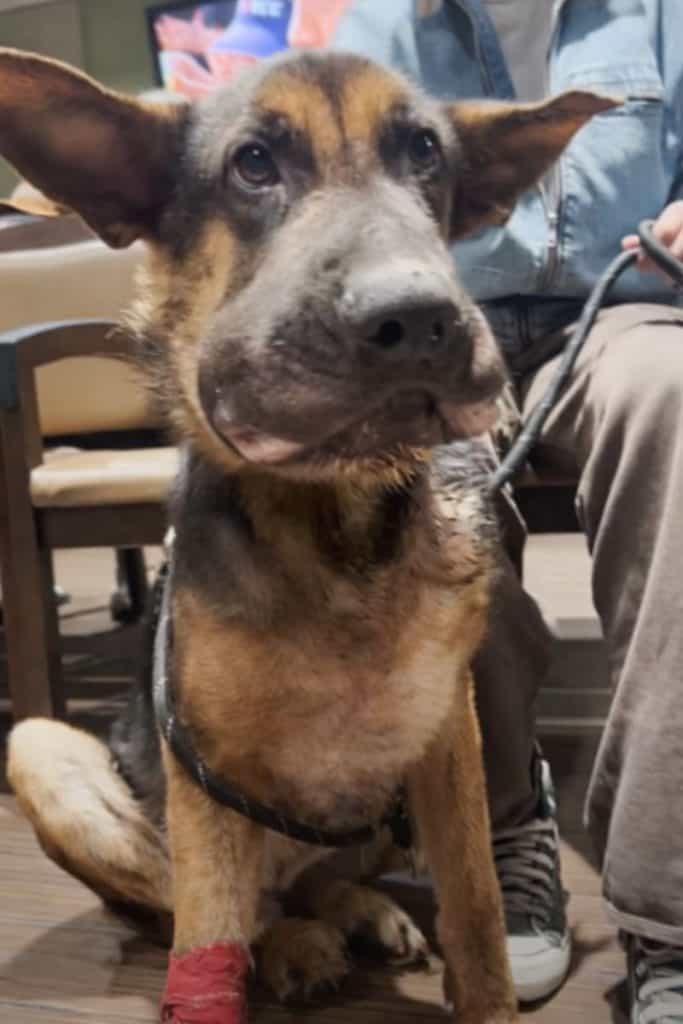 The dog who arrived swollen, starving, and alone was still there.