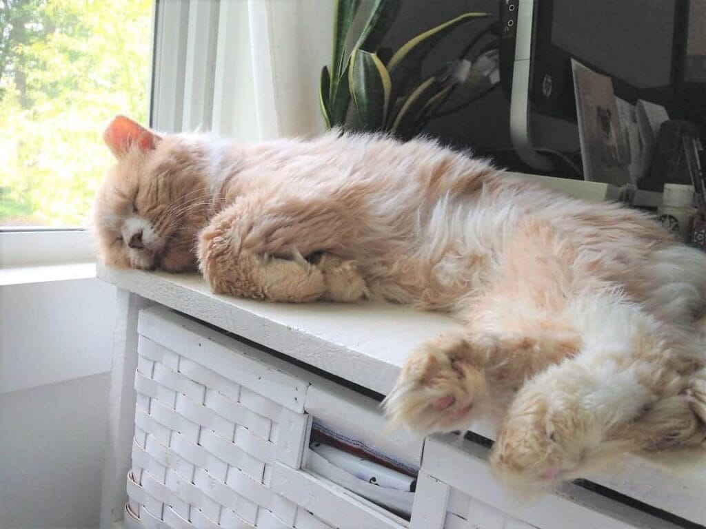 From a neglected, matted stray, he transformed into a pampered house cat with a warm bed, good food, and a family who adored him.
