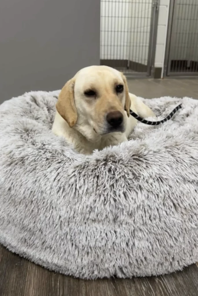 At the veterinary clinic, she was given a soft bed, food that was hers alone, and a quiet space where no one expected too much of her.