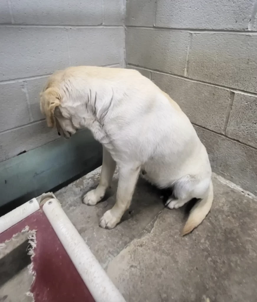 In the video, she did not bark or pace. She simply stared at the wall as though it were the only thing she could trust. Her fear was so complete that she could not even look at the camera.