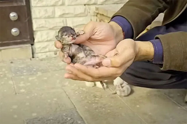 She ran toward one of the rescuers, and as she got closer, it became clear that she was not alone. Gently held in her mouth was something incredibly small and fragile—a newborn kitten whose body looked far too still for comfort. The rescuer instinctively reached out and carefully took the tiny life from her, immediately sensing how weak the kitten was. Its body was cold, its movements almost nonexistent, and for a brief, heavy moment, it felt as though they might already be too late. The mother cat began to cry out, her voice filled with urgency and fear, circling close as if trying to urge them to do something, anything, to save her baby.