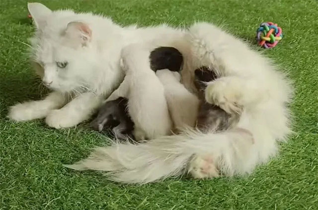Life on the streets is never kind, especially for a mother trying to raise her young in a world that offers no safety, no certainty, and no second chances. Every single day becomes a quiet, exhausting battle—searching for scraps of food, finding a dry place to rest, and staying alert to dangers that can appear without warning. For one small white cat, that struggle had gone on long enough to wear down even the strongest instincts, and yet, in the middle of that hardship, she made a decision so unexpected, so deeply emotional, that it would forever change not only her life, but the lives of her tiny kittens.