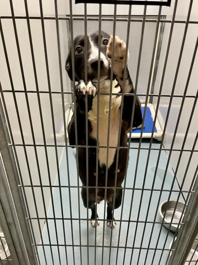Maya leaped to her feet, tail wagging in wide, hopeful circles that brushed the metal bars like tiny prayers.