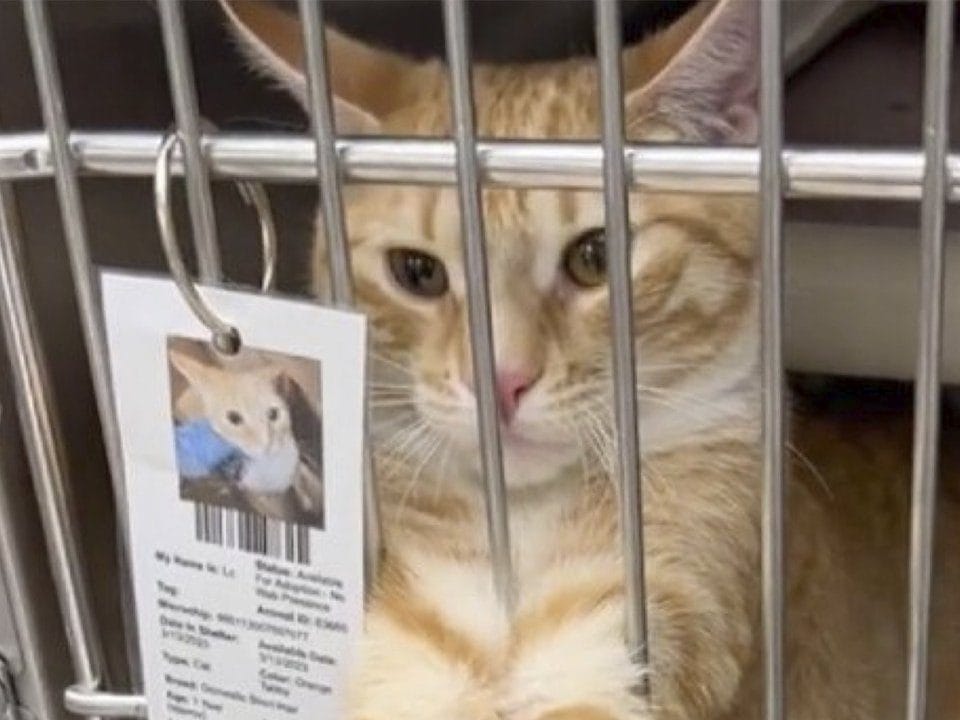 It showed him pressing his face against the cage bars, paw out, eyes wide.