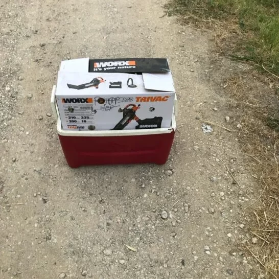 A sealed cardboard box sat near their ranch, with the words “puppies her” scrawled on it.