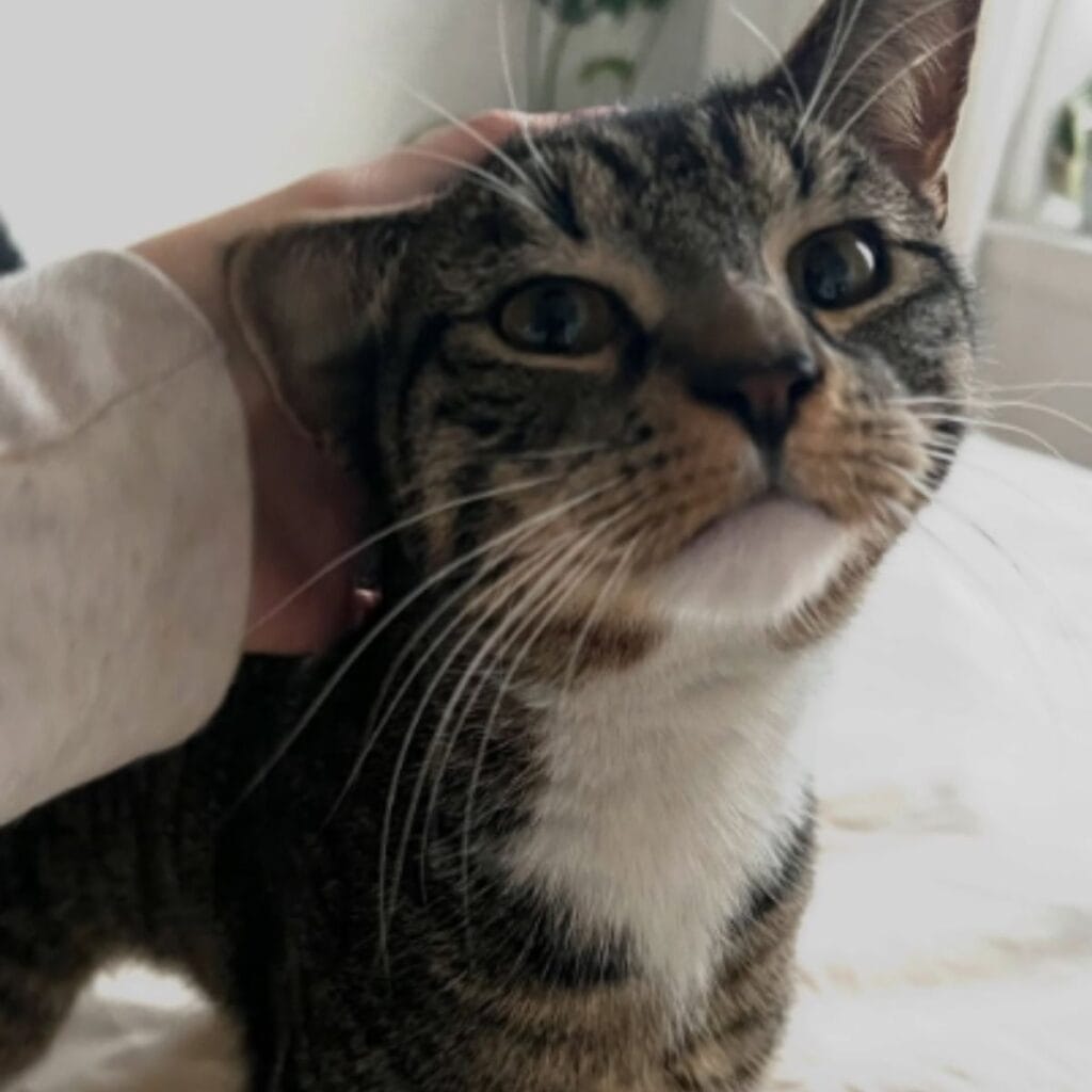 He leaned into gentle pets and responded to attention with soft purrs.