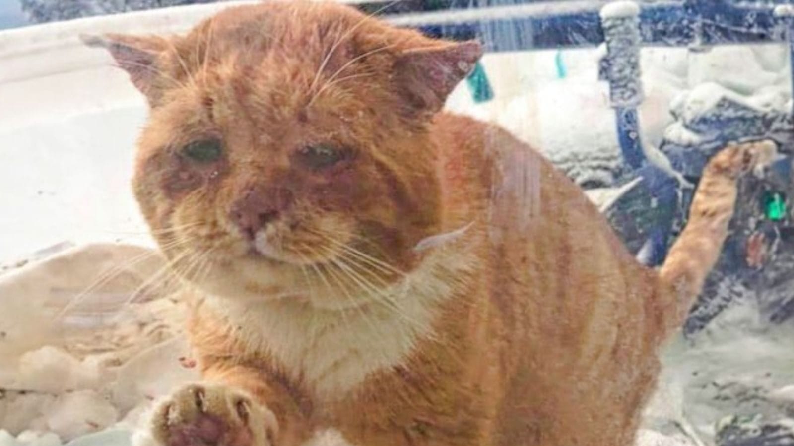Sitting there on her doorstep was a shivering ginger cat, clearly worn down from life on the streets.