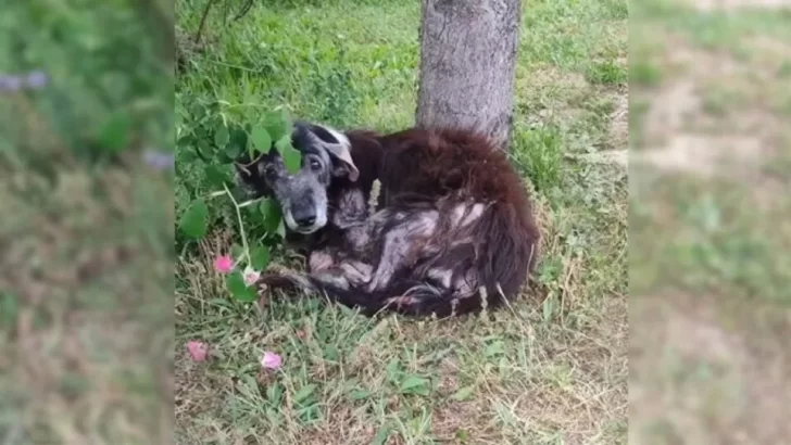 Rescuers arrived quickly, but the sight that greeted them was heartbreaking. Shadow lay helpless beneath the tree, and her sorrow was impossible to miss.