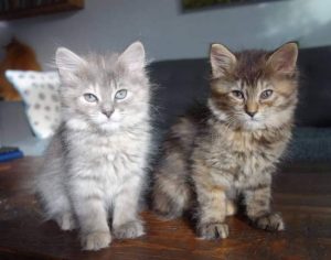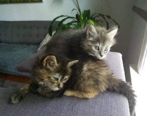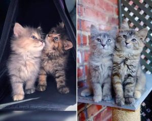 Kittens Zelda and Safira (beige) rubbed against each other, one sister tried to do everything exactly the same as the other. “They are similar in character and do everything together,” says Celine.