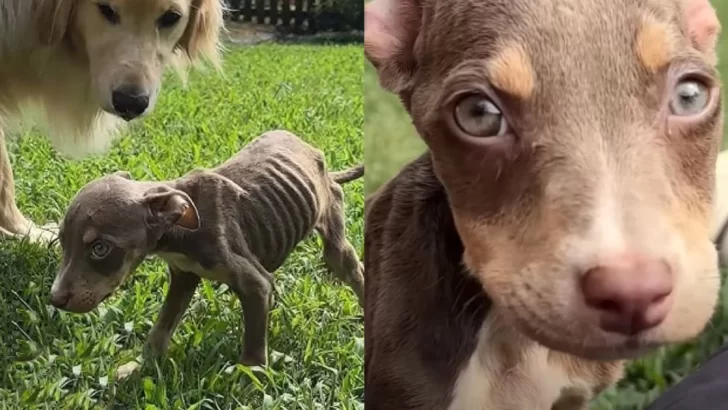 Skinny Abandoned Puppy Finds Comfort In Her Foster Siblings