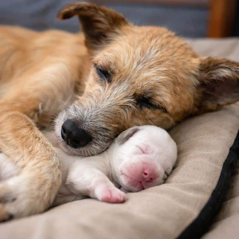 The newborn puppy was so small he barely moved.