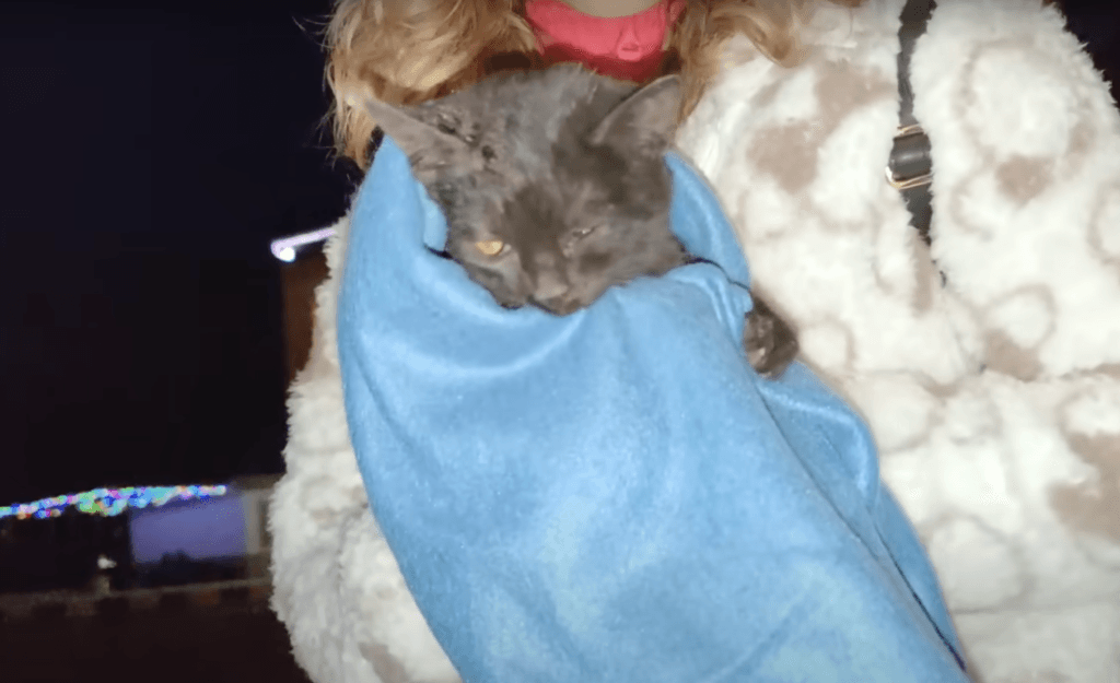 The cat, later named Feyra by her rescuers, was in a critical state. Her body was battered and bleeding, and she could barely move.