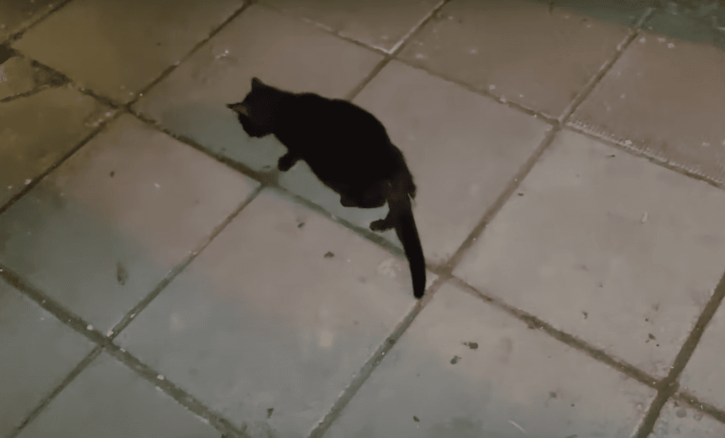 In the constant traffic, a black cat lay injured gasping for every breath and struggling to walk after being struck by a speeding car.