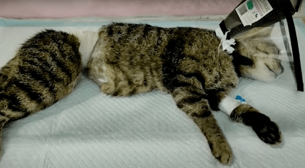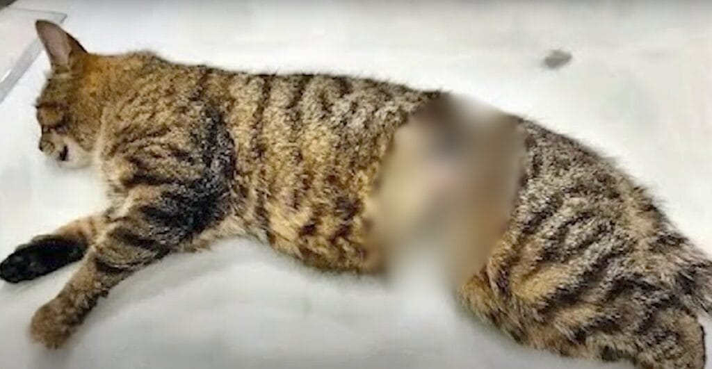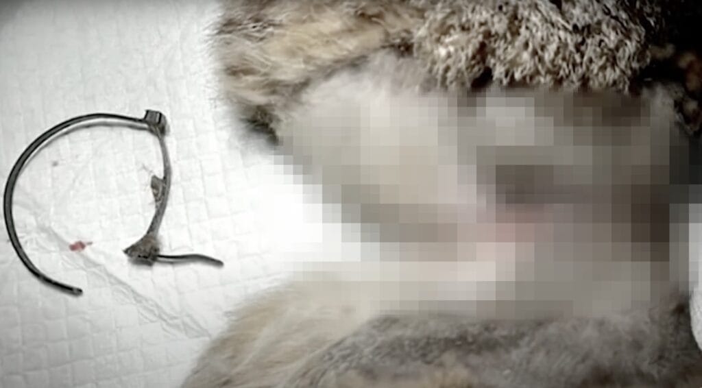 Around the cat’s tiny belly was what looked like a piece of string or band. Something was wrapped tightly, almost embedded in her skin.