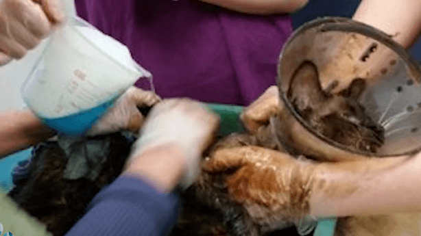 The rescuers had to be extremely careful. Tar sticks to everything and trying to remove it without causing pain or injury is like performing delicate surgery.