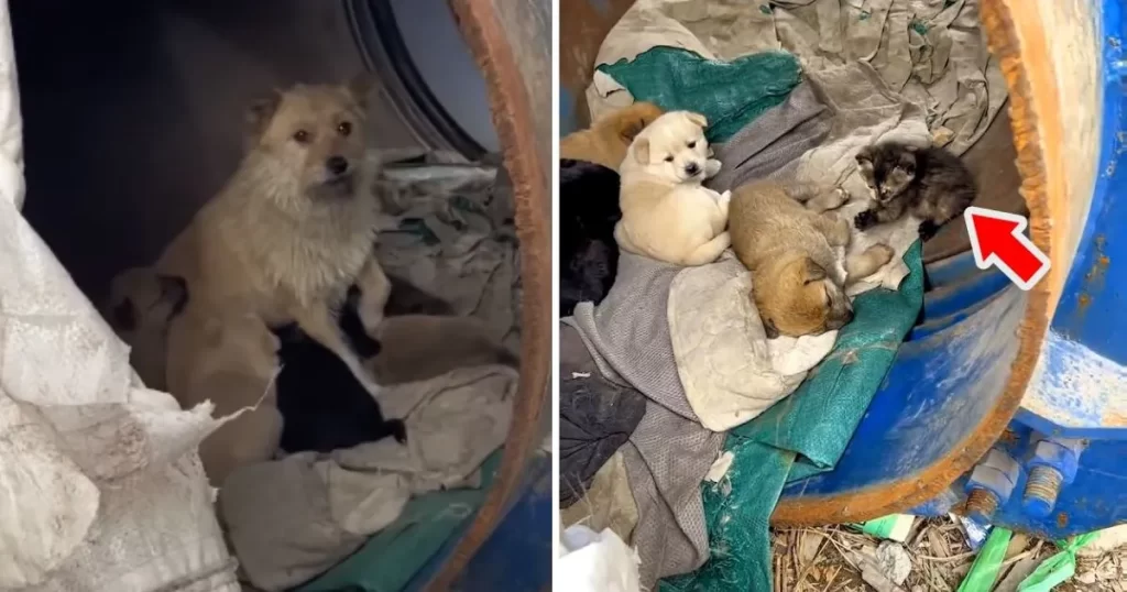 In a deeply moving tale of compassion and resilience, a kind-hearted woman stumbled upon a mother dog living inside a worn-out barrel. She was struggling to care for her tiny litter, and to the woman’s astonishment, not all of the babies were puppies.