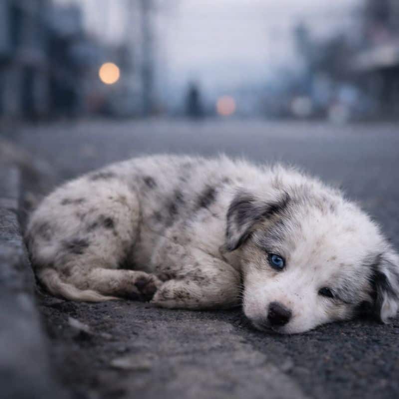 His fur is matted and dull.