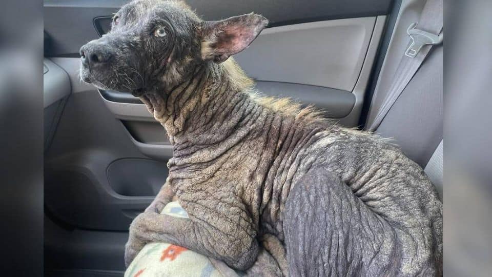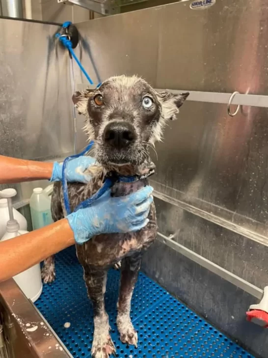 At the rescue, the dog was diagnosed with scabies, a highly contagious mite infection that caused extreme irritation and itching.