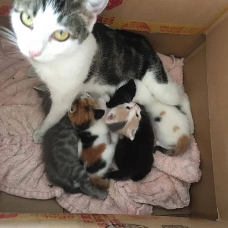 Jacqueline Santiago, a member of Friends for Life Rescue Network, explained, “Over the course of the next few hours, she would bring a kitten one by one and lay them in the box until all five were in there.” It was clear that Tala had chosen Vincent’s home as the safest place to raise her babies.