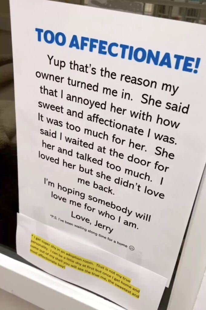 According to the shelter, Jerry’s former owner said he was simply too affectionate and too vocal.