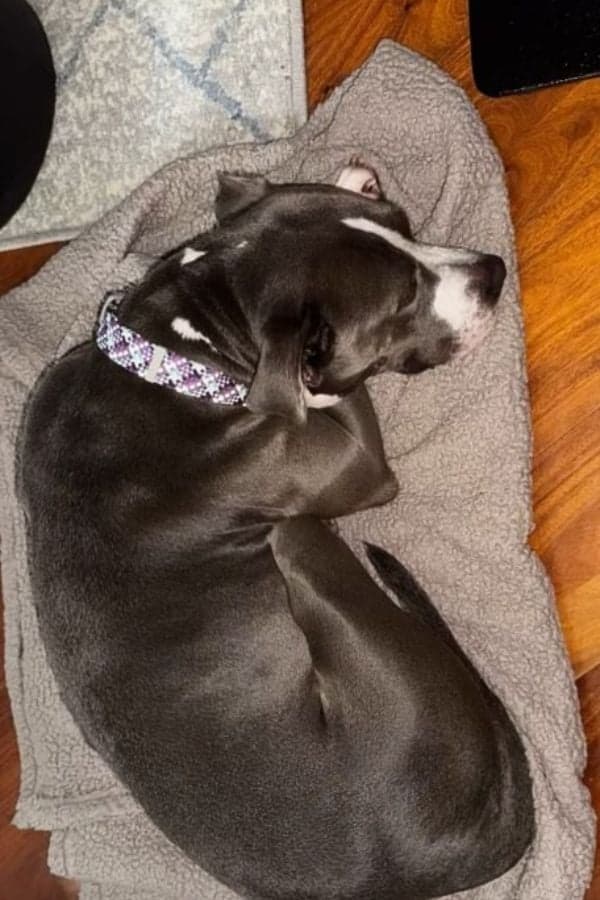 Now Sade lives a life full of warm beds, loving hugs, and quiet evenings surrounded by the people she loves. She doesn’t wonder anymore. She doesn’t wait by a door or watch puppies leave without her. She is home.