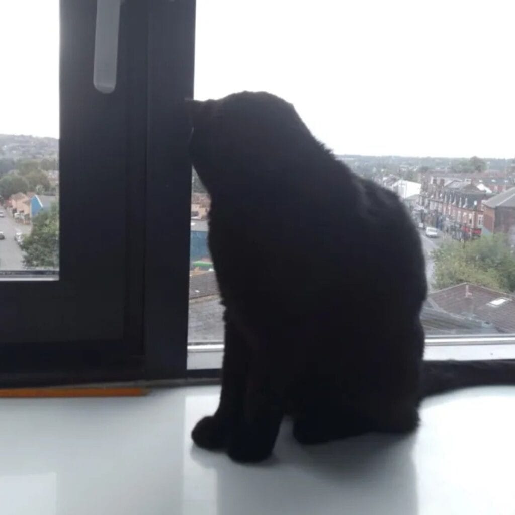 His owner laughed about it, saying, “Charlie jumps onto the window ledge and I see his head move from side to side like in a tennis match as he watches birds and cars.”