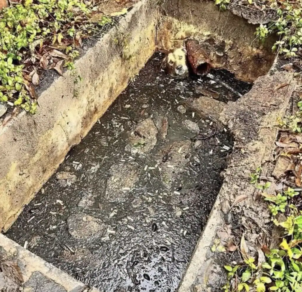 Only his head stayed above the filthy water.