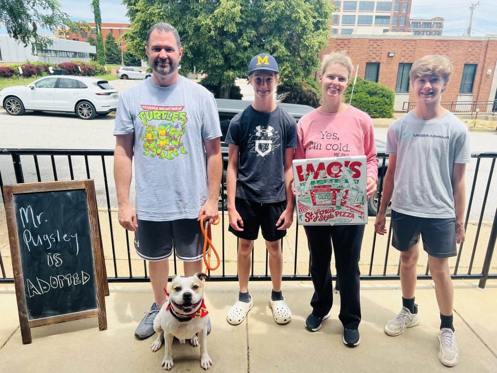 For seven long months, a brown-and-white pit mix named Mr. Pugsley sat quietly at Stray Rescue of St. Louis, waiting for someone to stop and notice him.