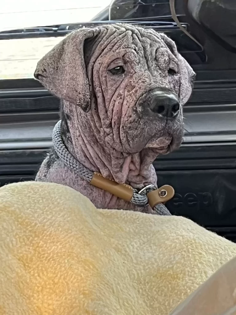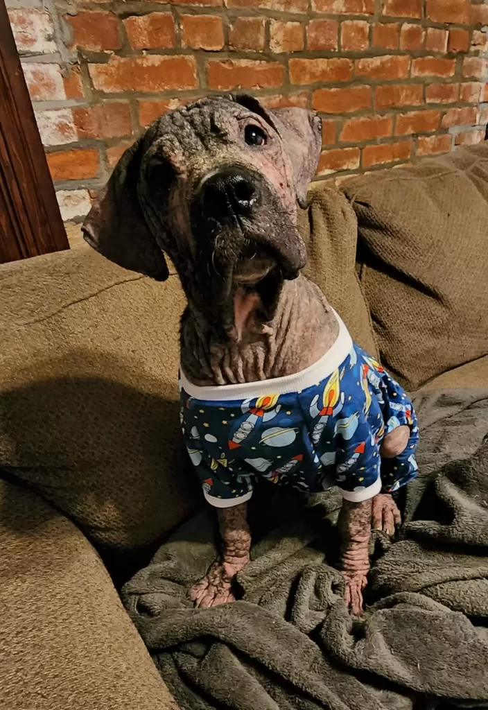 His skin was bare, pink, and painfully raw, and every step he took made his paws ache. For many people, he might have looked too broken to notice.