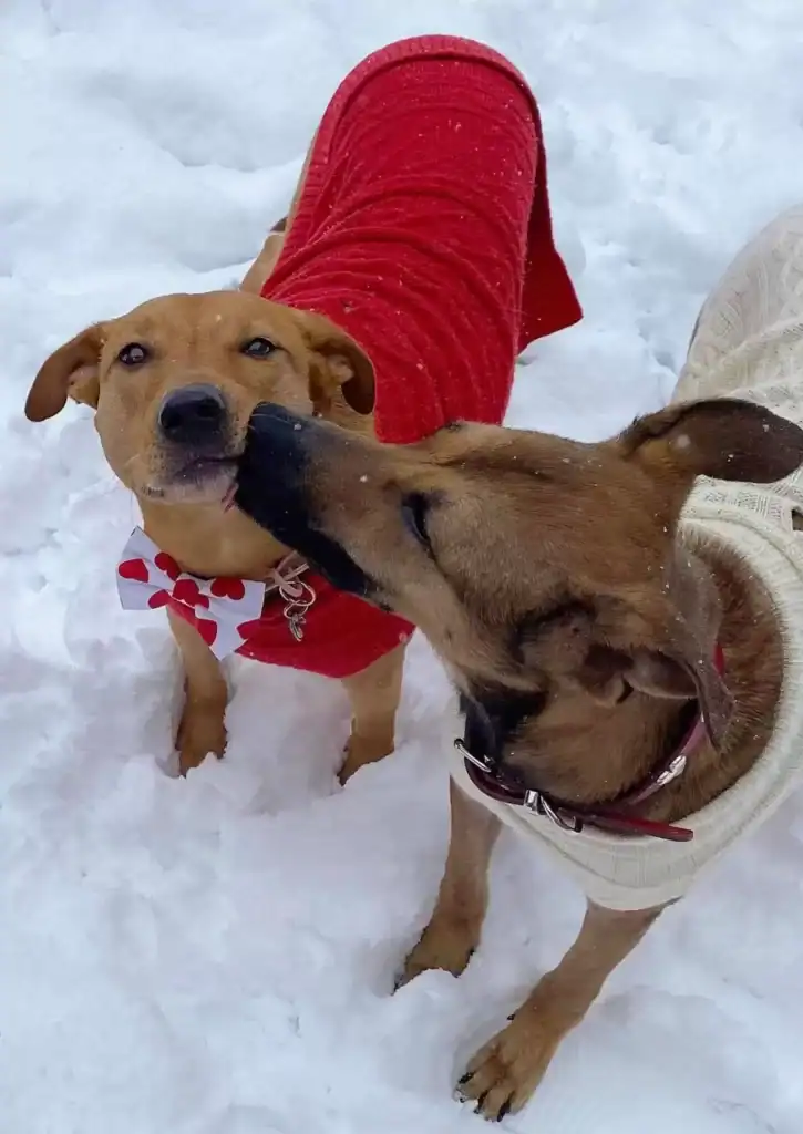 Moose and Maple, the family’s two gentle pups, welcomed her immediately, and she clung to them with desperate need. She followed them everywhere, trailing behind them like a quiet shadow.